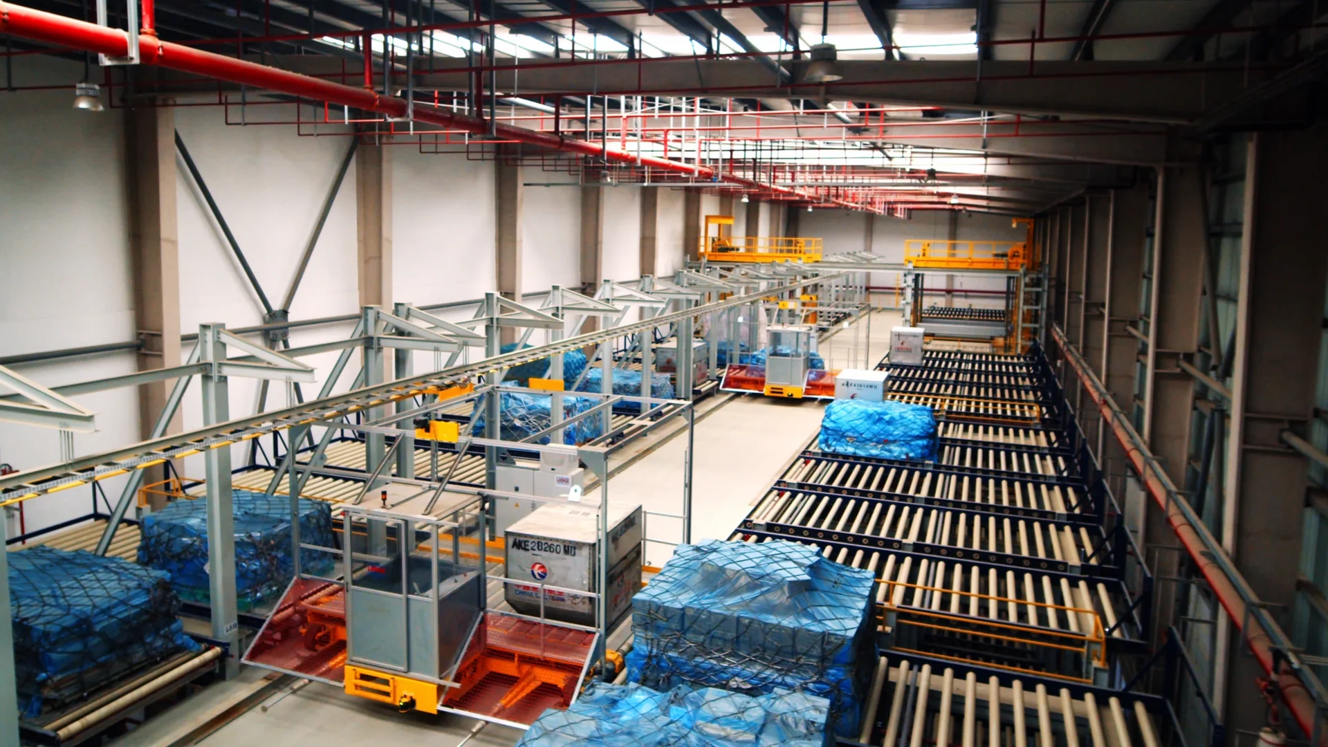 这支AGV车队与中国首套由罗地格提供的升降横移输送处理系统(Lift-and-Run System)实现高度协同,有效提升货站整体吞吐能力与智能化水平。通过垂直与水平多维度联动,货物可在仓储和处理环节间实现顺畅流转,进一步强化浦东机场智慧货运站的运行效能。