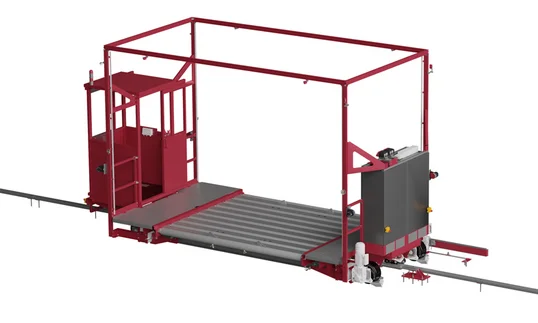 Transfer Vehicles travel on rails in terminal aisles, linking workstations, storage and cold zones. They move ULDs fast, precise and safely across levels.